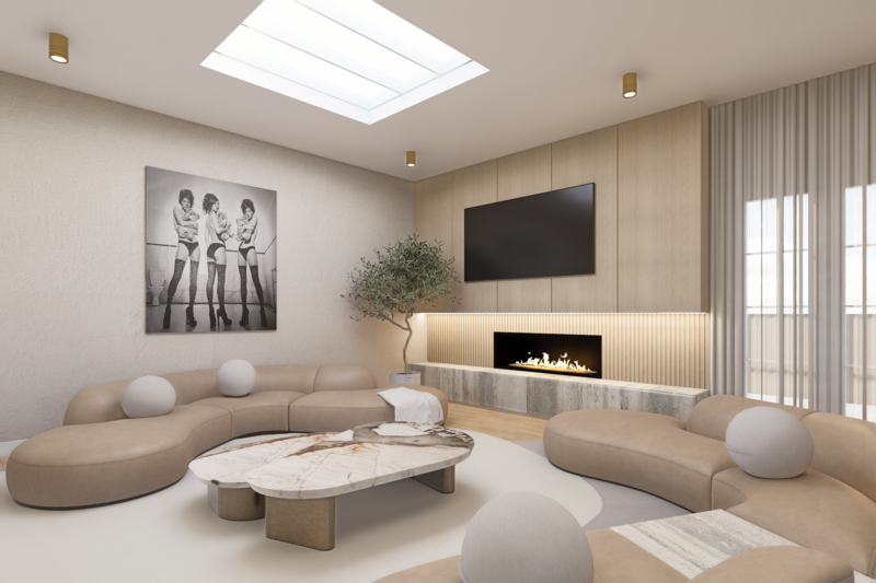 From the bespoke fireplace designed as the heart of the space to the carefully curated art collection, each piece was chosen to reflect the spirit of the home and the lifestyle of those who live within it.